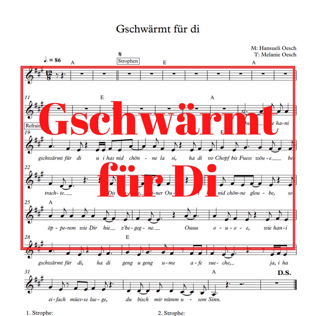 Wir freuen uns Euch endlich die Noten von unserem Lied “Gschwärmt für Di” anbieten zu können.