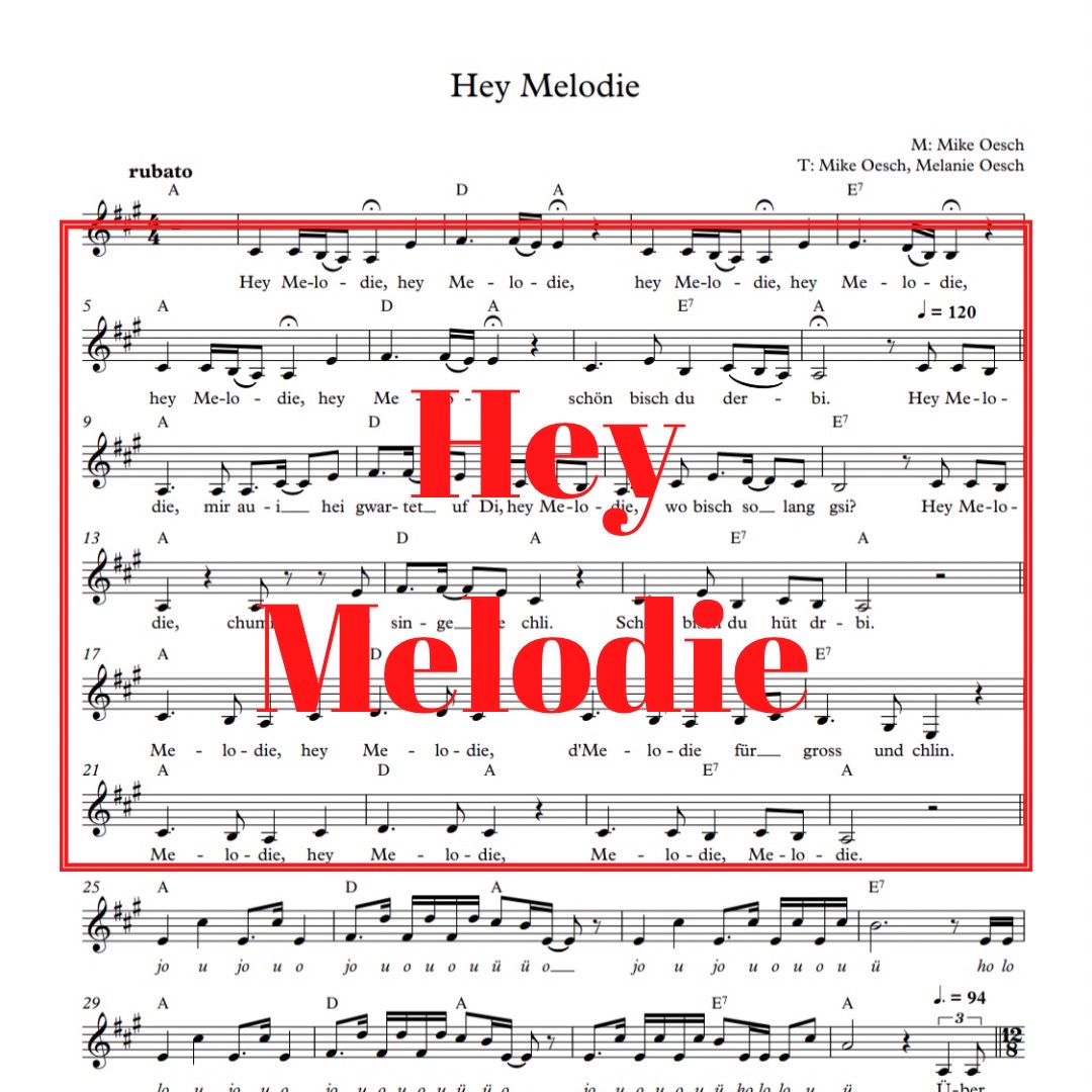 Wir freuen uns Euch die Noten von unserem Lied “Hey Melodie” anbieten zu können.