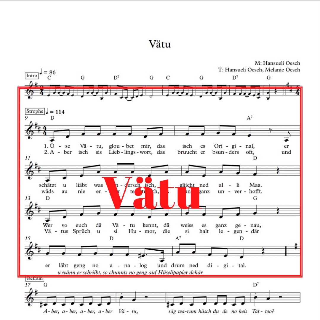 Wir freuen uns Euch endlich die Noten von unserem Lied “Vätu” anbieten zu können.